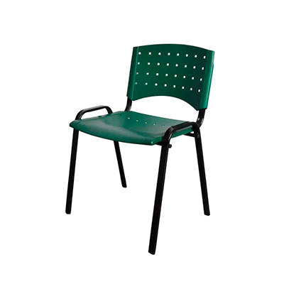 Ancho: 54 cm, altura asiento a piso: 43 cm, profundidad: 40 cm, altura total: 80cm. Estructura caño semioval 30/14 espesor 1.2 en color negro. Apilable.